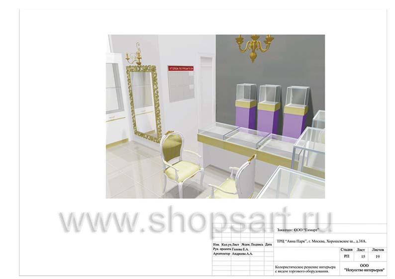 - Дизайн-проект ювелирного магазина “Золотой имидж” г. Москва ТЦ “Авиапарк” на основе коллекции торгового оборудования “СОВРЕМЕННЫЙ СТИЛЬ”. Лист 15.