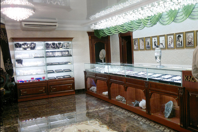 Фотографии открытого ювелирного магазина «Центр Ювелир» г. Архангельск, на основе коллекции «ЭЛИТ КЛАССИК» Торговое оборудование для ювелирных магазинов на основе коллекции «Элит Классик» Прилавок ювелирный, классический. Куб островной, демонстрационный, с 4-мя рабочими стеклянными колпаками. Линия ювелирных прилавков (классика) с угловыми доборами. Посмотреть коллекцию полностью