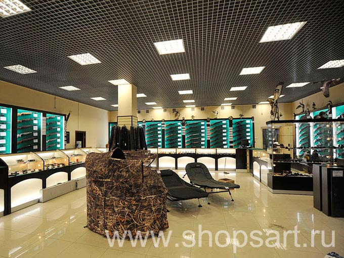 - Торговое оборудование коллекции РОНДО для магазина оружия и рыбалки Охота на рыбалку. Фото 01.
