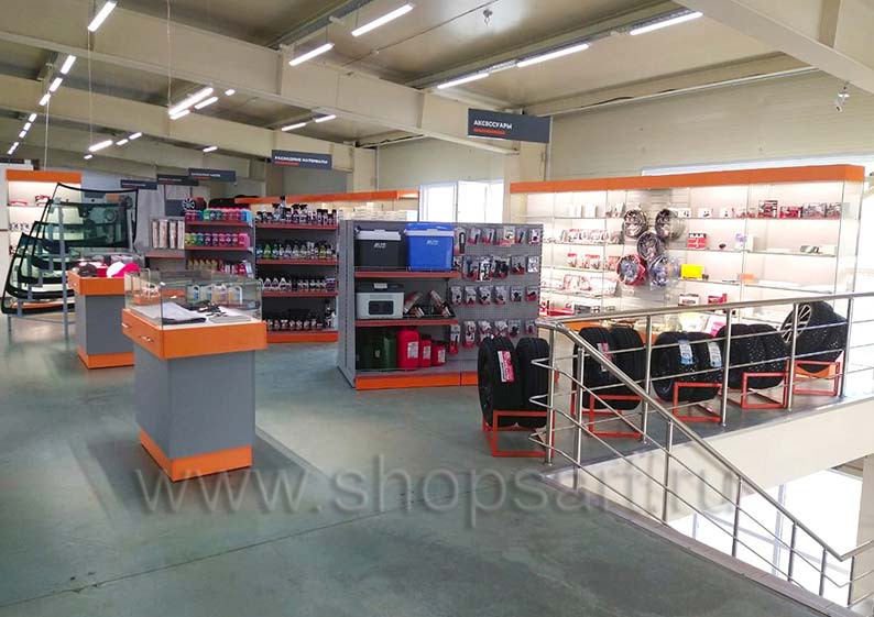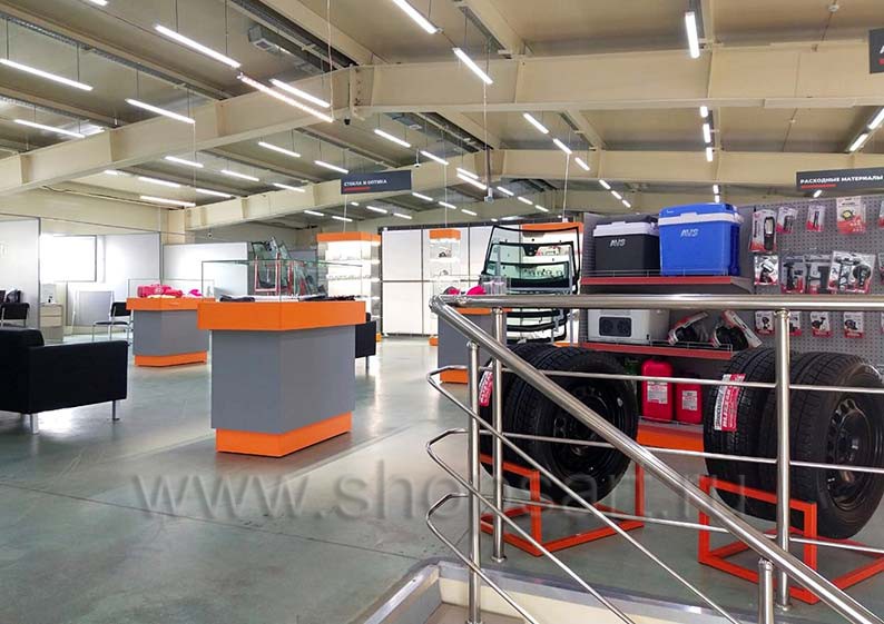 Вы планируете открыть автомагазин или желаете сделать более функциональным и стильным оснащение действующего автосалона? Специалисты нашей компании готовы предложить оригинальные варианты оборудования. Заказав мебель для автосалона у нас, вы получите современные и вместительные торговые конструкции. Рекомендуем ознакомиться с представленными на сайте нашей компании вариантами оснащения торговой мебелью автосалонов. Вы увидите разнообразное и стильное, удобное в применении и прочное оборудование. Один из вариантов оснащения коммерческого помещения представлен на данной странице. Это фотографии мебели для автотоваров в автосалоне БН-Моторс, город Брянск.