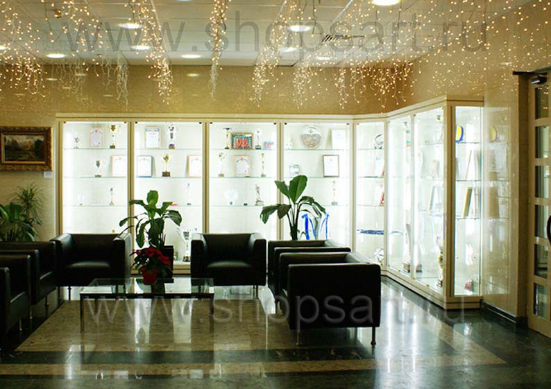 На этой странице Вы можете ознакомиться с фотографиями витрин для наград в Национальном банке “ТРАСТ”. Наша компания разработала дизайн офисной мебели, дизайн витрин для наград, произвела и установила мебель для банка.