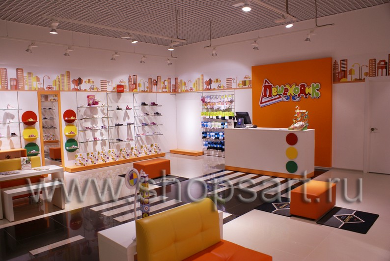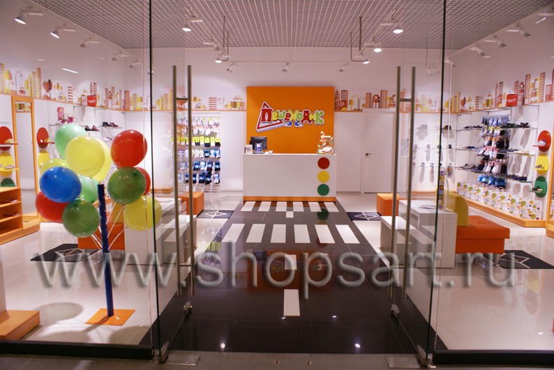 Дизайн интерьера магазинов детской обуви на основе коллекции КАРАМЕЛЬ