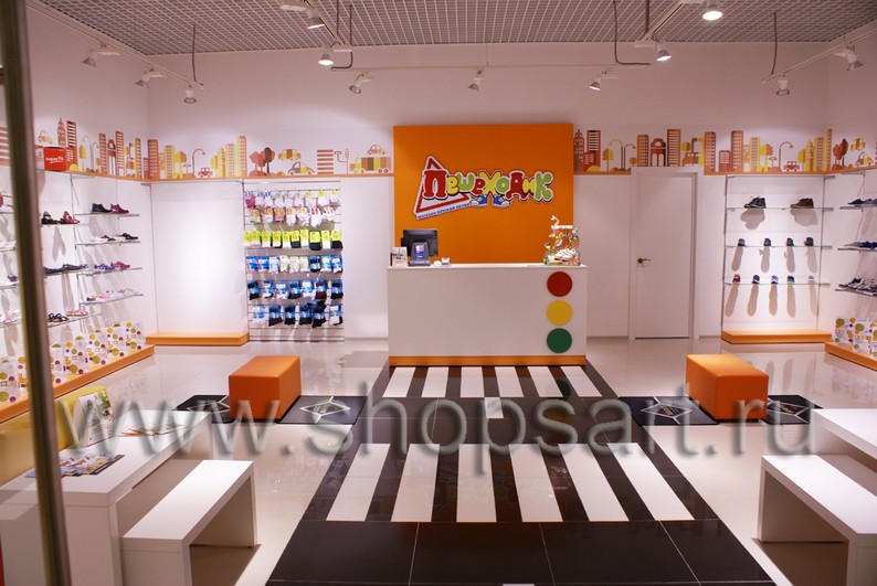 Дизайн-проект магазина детской обуви “Пешеходик” в ТЦ “Рига Молл” на основе коллекции “КАРАМЕЛЬ”
