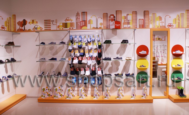 Дизайн интерьера магазина детской обуви «Мишутка», г. Самара, на основе коллекции торгового оборудования «КАРАМЕЛЬ»