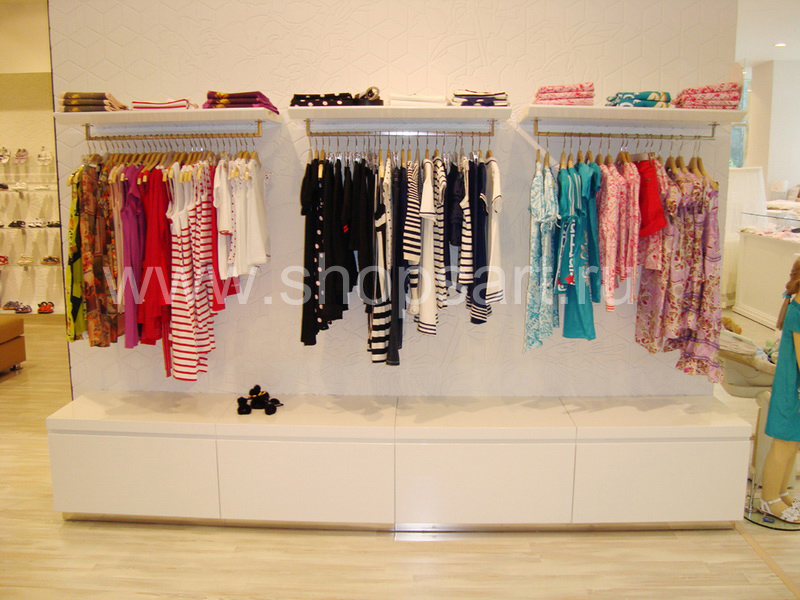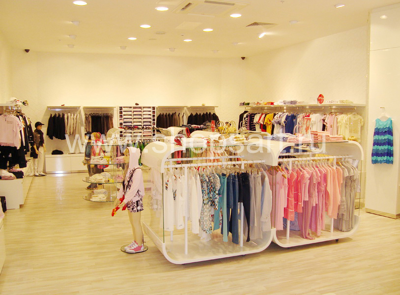 Фотографии торгового оборудования в открытом детском магазине “Винни”, отдел одежды, ТЦ «Юнимолл», Новорижское ш., на основе коллекции торговой мебели «21 ВЕК»