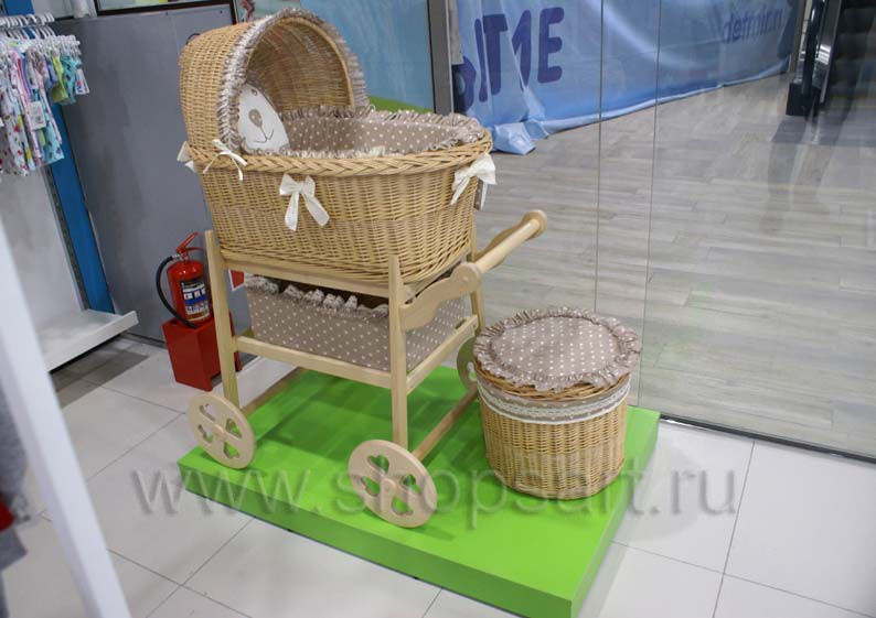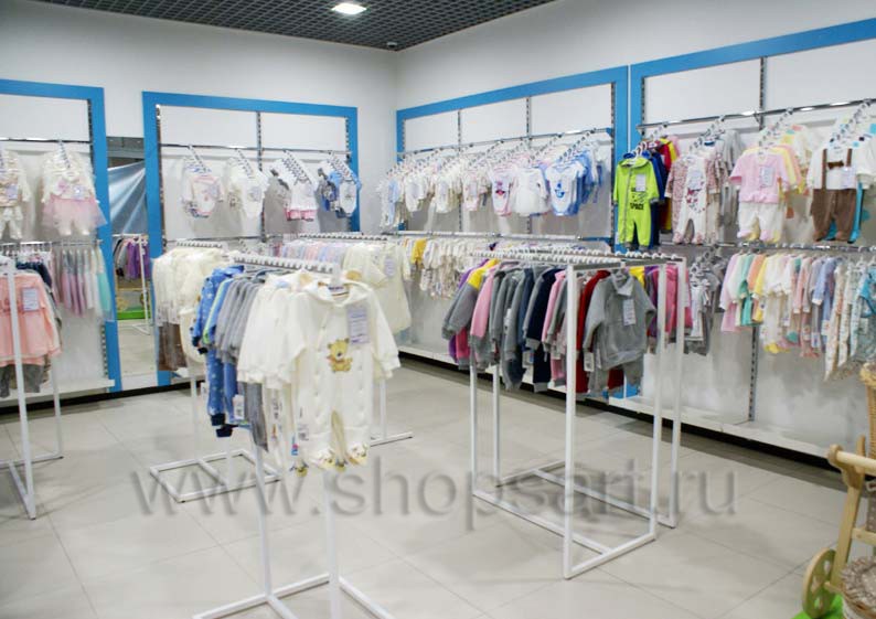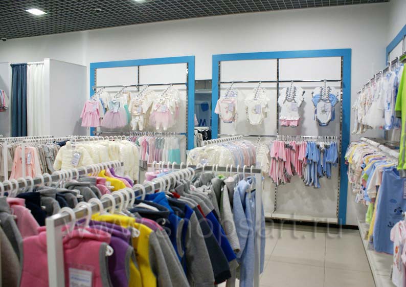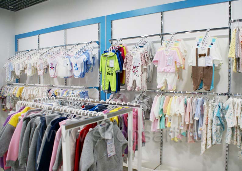 Детские товары маленьких размеров (например, шапочки, чепчики, носочки, белье для новорожденных и т.п.) можно красиво разложить в прилавках или на стеллажах.