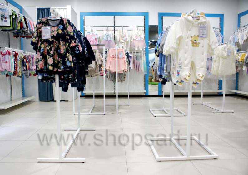 Если в магазине продается одежда для девочек и мальчиков, то лучше всего для ее презентации подойдут манекены и вешала. Последние предпочтительно выбирать среди конструкций, выполненных из окрашенного металла. Дело в том, что такие вешала обладают целым рядом преимуществ: