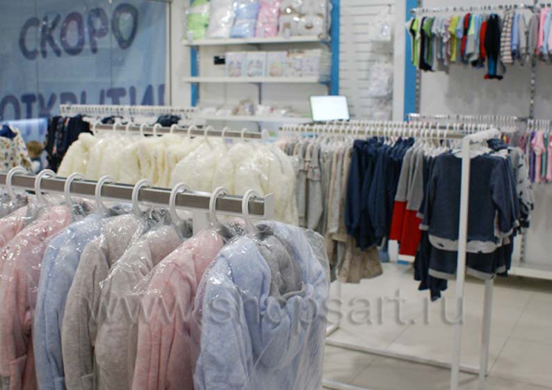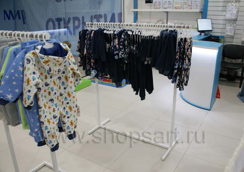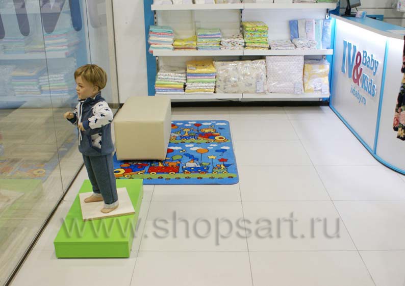 Если в детском магазине продается одежда, то потребуется не только торговая мебель для презентации изделий, но также оборудование для примерки, в частности: