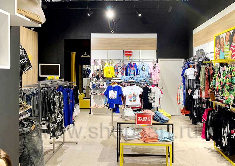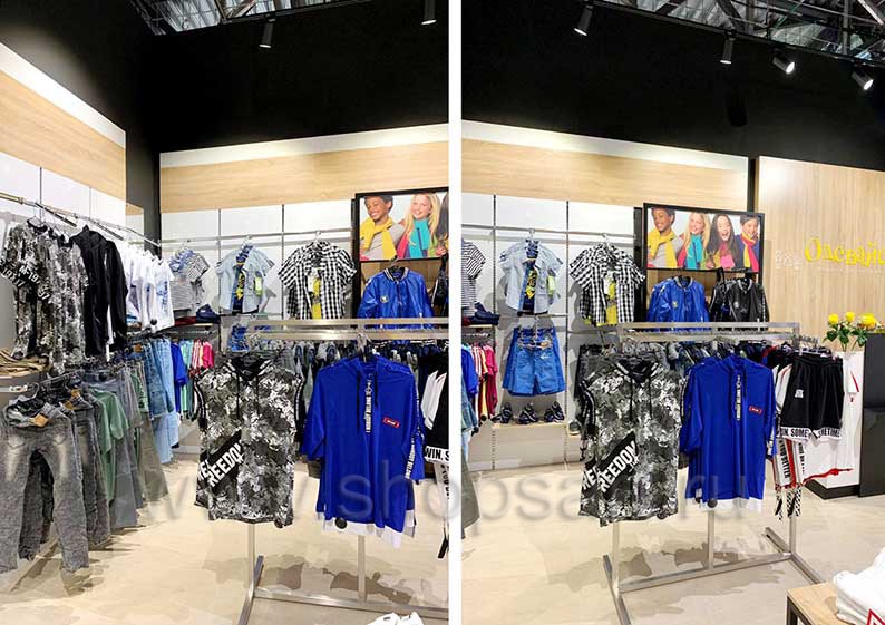 На этой странице Вы можете ознакомиться с фотографиями торгового оборудования в открытом магазине подростковой одежды «ОДЕВАЙС», находящемся в городе Наро-Фоминск, ТРЦ “Воскресенский Пассаж”, Площадь Свободы, дом 2, к. 1, на основе коллекции торговой мебели «РАДУГА». Поставила оборудование для магазина: торговые стеллажи, пристенные стеллажи, торговые острова, торговые стойки и другое оборудование для обуви компания «Искусство интерьеров». Узнать больше о наших коллекциях мебели для детских магазинов Вы можете на странице торгового оборудования для детских магазинов.