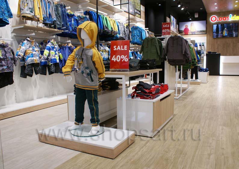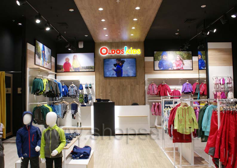 На этой странице Вы можете ознакомиться с фотографиями торгового оборудования в открытом сетевом детском магазине одежды «OLDOS KIDS», находящемся в ТРЦ “Каширская Плаза”, 3-й этаж, город Москва, на основе коллекции торговой мебели «РАДУГА». Поставила оборудование для магазина: торговые стеллажи, пристенные стеллажи, торговые острова, торговые стойки и другое оборудование для детского магазина компания «Искусство интерьеров». Узнать больше о наших коллекциях мебели для детских магазинов Вы можете на странице торгового оборудования для детских магазинов.