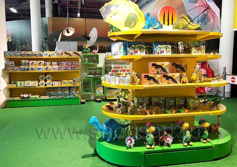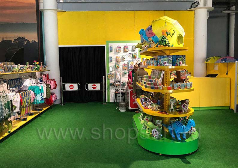 На этой странице Вы можете ознакомиться с фотографиями торгового оборудования в открытом детском магазине сувениров, находящегося в городе Сочи, улица Международная, в парке роботизированных динозавров Дино Клуб, на основе коллекции торгового оборудования «ЦВЕТНЫЕ МЕТАЛЛИЧЕСКИЕ СТЕЛЛАЖИ». Разработала и поставила торговую мебель: торговые стеллажи, овальные стеллажи, островные металлические стеллажи и другую торговую мебель компания «Искусство интерьеров». Узнать больше о наших коллекциях мебели для магазинов Вы можете на странице торгового оборудования для детских магазинов.