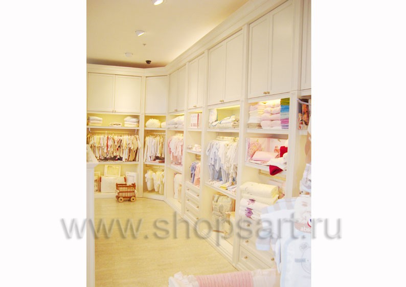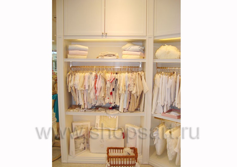 Дизайн торгового оборудования сетевого детского магазина “Винни”, Москва, Рублёвское ш., д. 20, корп. 1, на основе коллекции «БЕЛАЯ КЛАССИКА»
