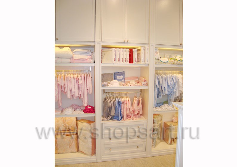 На этой странице Вы можете ознакомиться с фотографиями торгового оборудования в открытом детском магазине «Винни», отдел товаров для новорожденных, находящегося в ТЦ “Dream House”, дер. Барвиха, Московская область. Торговую мебель для магазина, на основе коллекции «БЕЛАЯ КЛАССИКА», разработала компания «Искусство интерьеров». Узнать больше о наших коллекциях оборудования для детских магазинов вы можете на странице мебели для детских магазинов.