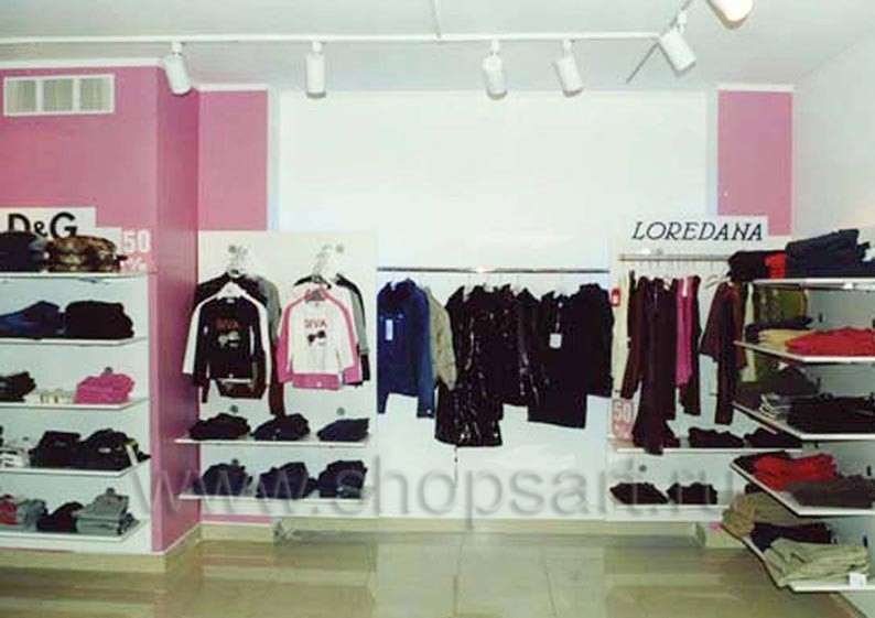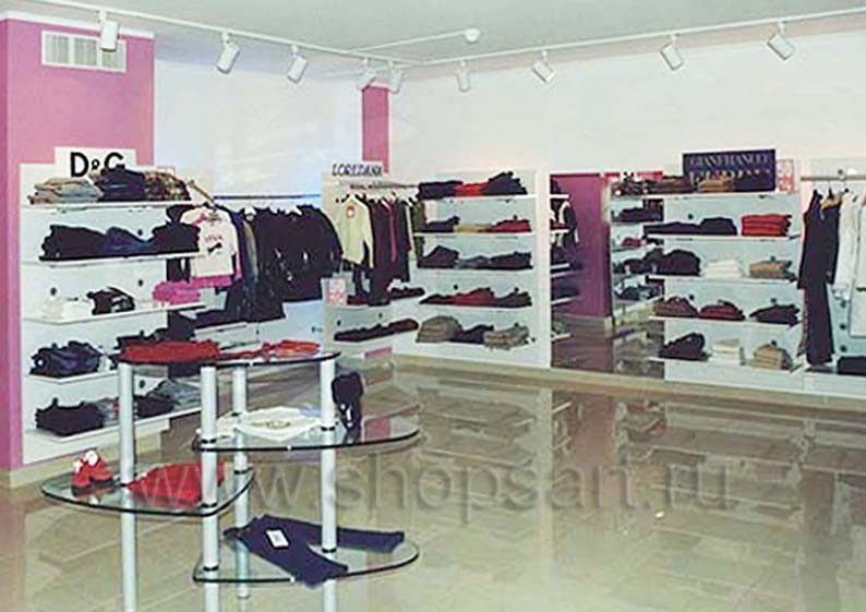 - Стеллажи. Это универсальное торговое оборудование, пригодное для презентации самых разных товарных позиций (например, детского белья и трикотажных изделий).