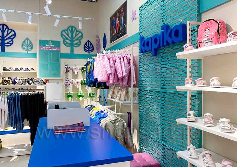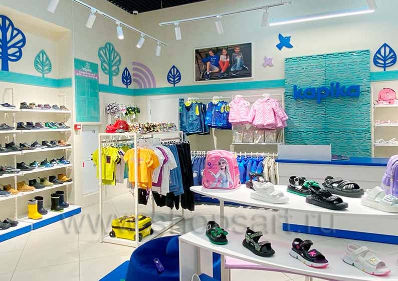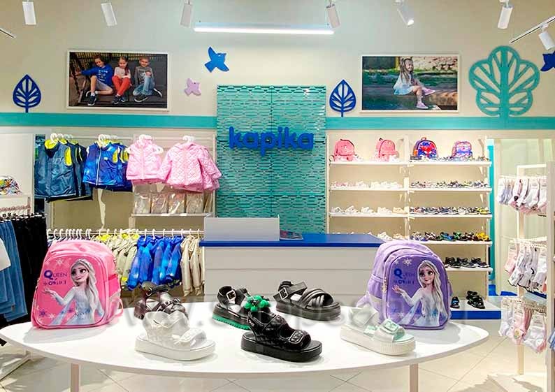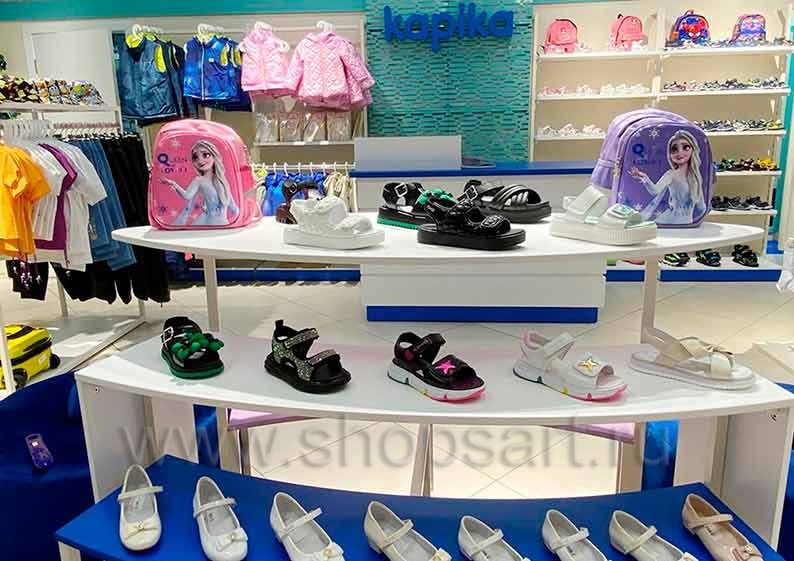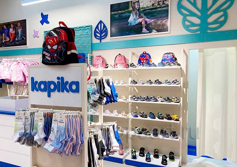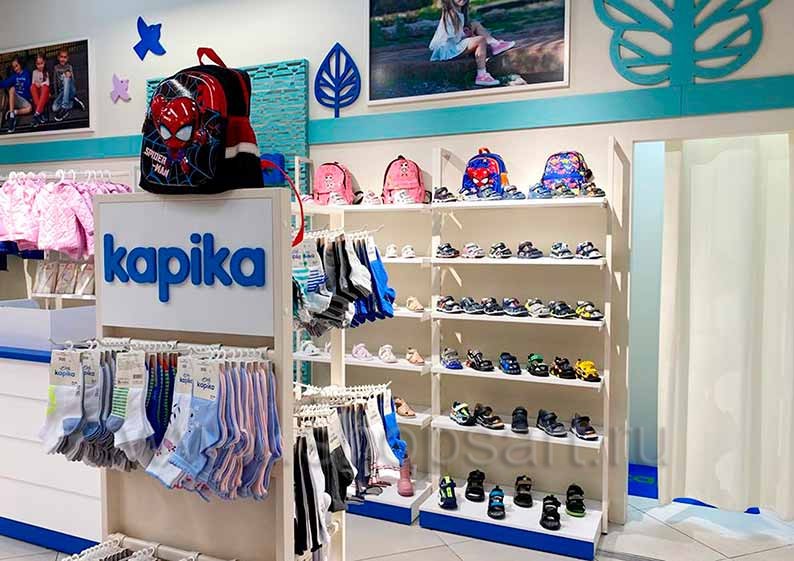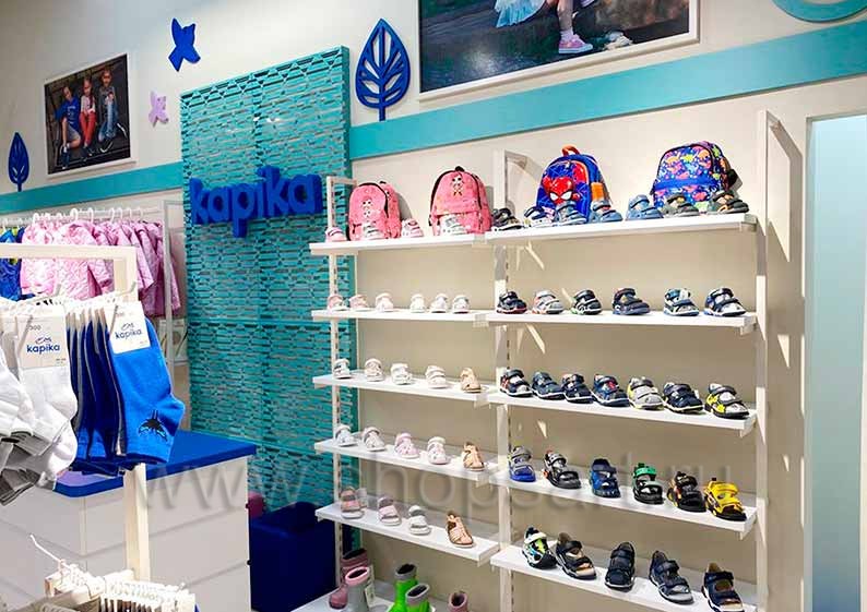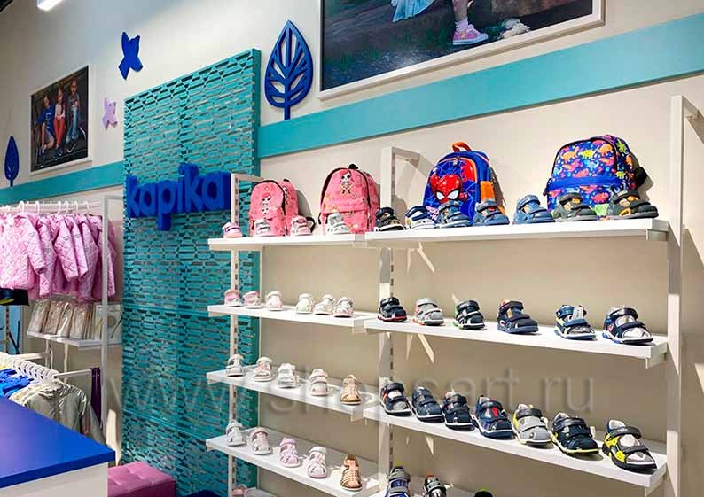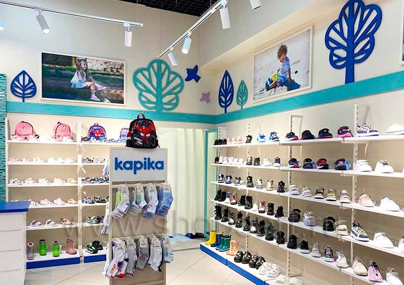 На этой странице Вы можете ознакомиться с фотографиями торгового оборудования в открытом магазине детской обуви «Kapika», находящемся в ТРЦ “Весна”, город Москва, Алтуфьевское шоссе, 1-й километр, вл3с1, на основе коллекции торговой мебели «СТИЛЬ ЛОФТ». Поставила оборудование для магазина: витрины для обуви, стеллажи для магазина обуви, острова для магазина обуви, полки для магазина обуви и другое оборудование для обуви компания «Искусство интерьеров». Узнать больше о наших коллекциях мебели для магазинов Вы можете на странице оборудования для магазинов обуви.