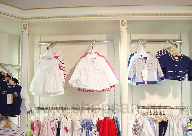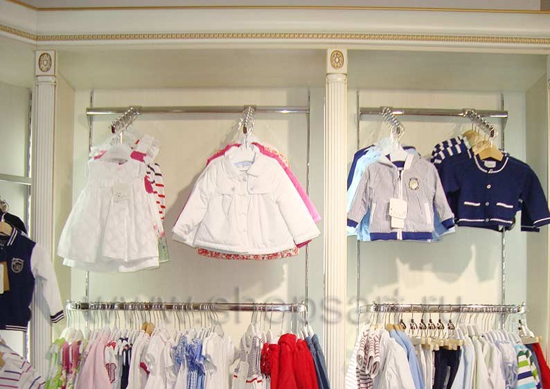 Несмотря на их жизненную неопытность, именно за малышами стоит последнее слово в выборе товара в детском магазине. Юные девочки и мальчики уговаривают разные способами – кто плачем, кто умиляющей улыбкой – мам и пап купить им «то красивое платье» или «эту классную футболку». При выкладке товаров следует принимать во внимание неизбежность возникновения таких ситуаций. По сути, именно правильное размещение детской одежды приводит к тому, что многие юные посетители магазина не спешат покидать его, а хотят набрать побольше красивых вещичек для себя любимых. Преимуществом современного торгового оборудования является возможность укомплектования того или иного вида конструкций дополнительными элементами: навесками, крючками, корзинами, полками и т.д. Поэтому презентация широкого ассортимента изделий не должна стать невыполнимой задачей для предпринимателя.