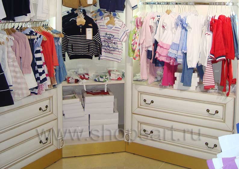 В наши дни оснащение заведений, реализующих вещи для малышей и подростков, предполагает применение разных категорий конструкций. Рассмотрим, как правильно использовать тот или иной вид торговой мебели для презентации детской одежды.