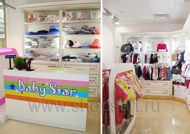 На этой странице Вы можете ознакомиться с фотографиями торгового оборудования в открытом магазине детской одежды “Baby Star», находящегося в ТЦ “Капитолий”, город Москва, улица Миклухо-Маклая, дом 32А, на основе коллекции торговой мебели “ЭЛИТ ГОЛД”. Произвела и поставила в магазин оборудование для одежды: вешала для магазина одежды, стеллажи для магазина одежды, стойки для магазина одежды, острова для магазина одежды компания «Искусство интерьеров». Узнать больше о наших коллекциях мебели для магазинов одежды Вы можете на странице оборудования для магазина одежды.