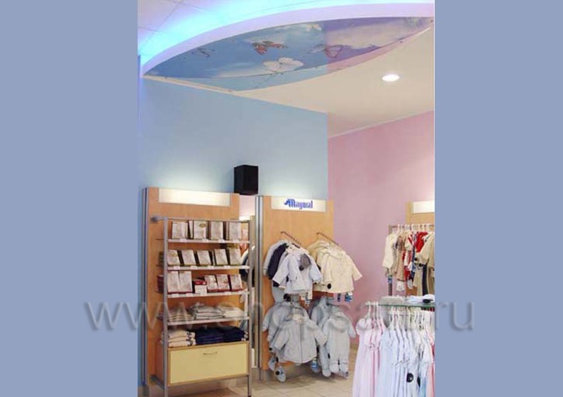 Дизайн интерьера магазина детской одежды “Планета детства”, ТРЦ «Азовский» г. Москва, на основе коллекции торгового оборудования «ГОЛУБАЯ ЛАГУНА»