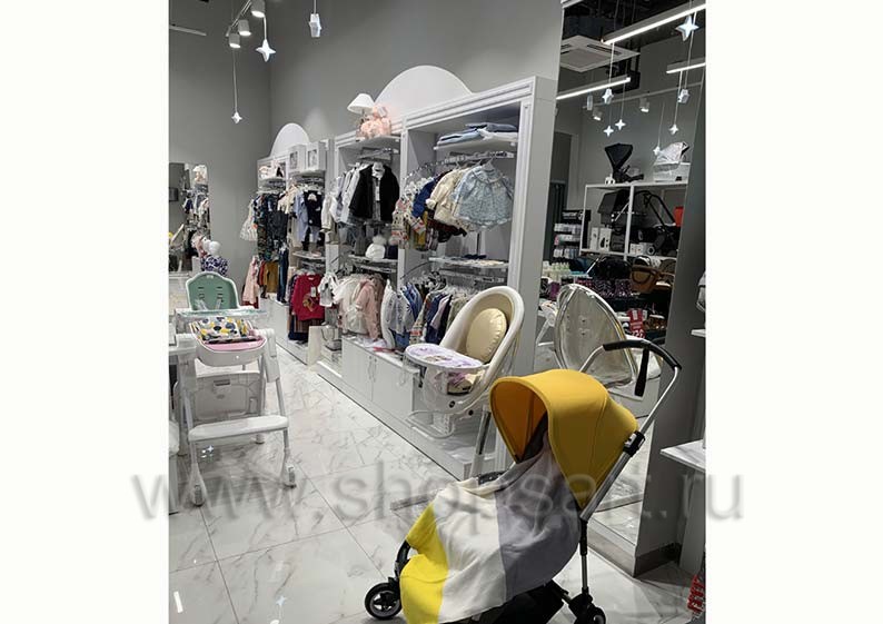 Дизайн торгового оборудования магазина детской одежды “Винни”, г. Москва, Рублёвское ш., д. 20, корп. 1, на основе коллекции «БЕЛАЯ КЛАССИКА»
