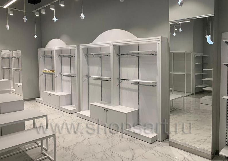 Торговое оборудование для магазинов одежды на основе коллекции БЕЛАЯ КЛАССИКА