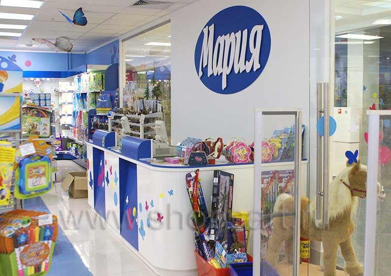 Дизайн интерьера магазина детской одежды “Перемена”, ТРЦ «Азовский» г. Москва, на основе коллекции торгового оборудования «ГОЛУБАЯ ЛАГУНА»