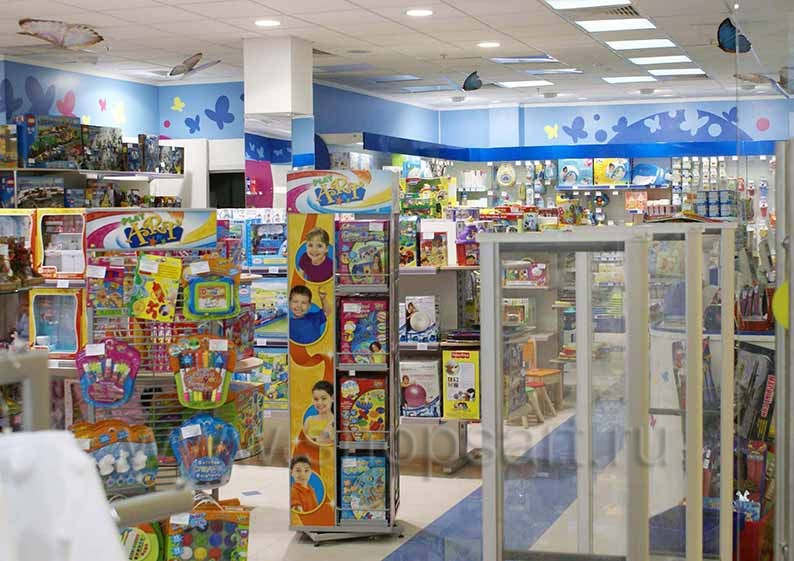 - Как уже было сказано, юные посетители магазинов любят простор. Поэтому важно обеспечить им свободное передвижение по торговому залу. Не менее необходимо наличие пространства взрослым покупателям. В магазине нужны широкие проходы к витринам, торговым стеллажам и другому оборудованию. Такие удобства детям и их родителям будет проще обеспечить, если использовать для оснащения коммерческого объекта конструкции компактных размеров. Однако при этом торговая мебель должна быть вместительной.