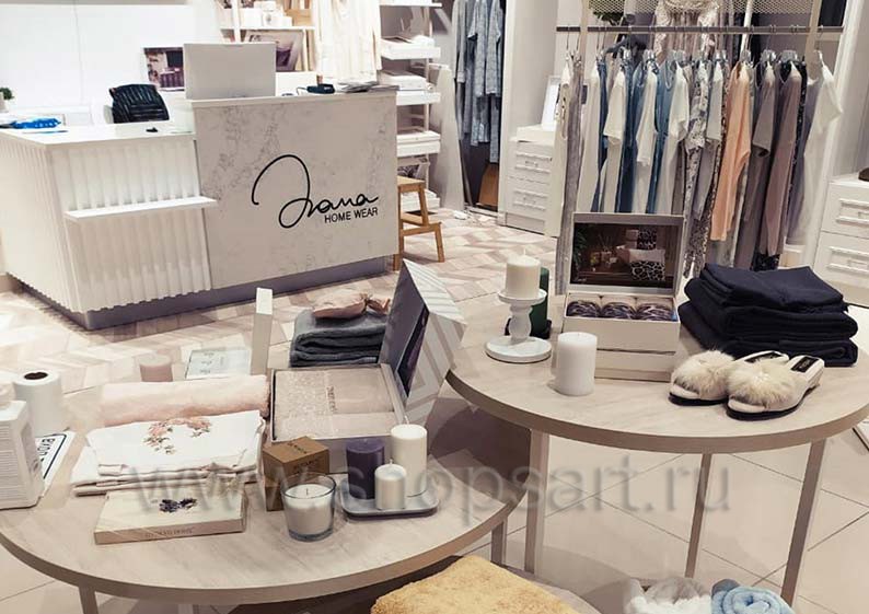 На данной странице представлены фотографии торгового оборудования магазина домашней одежды Дюма коллекция Классический Лофт, на которых вы можете наглядно увидеть преимущества этой мебели.