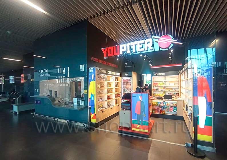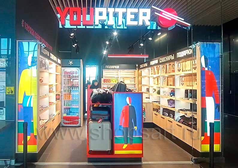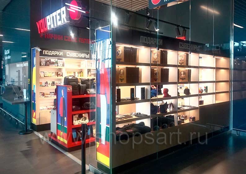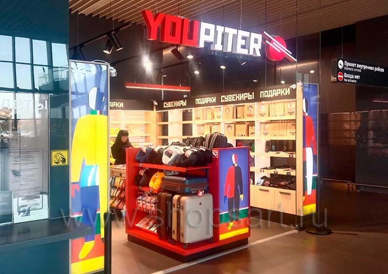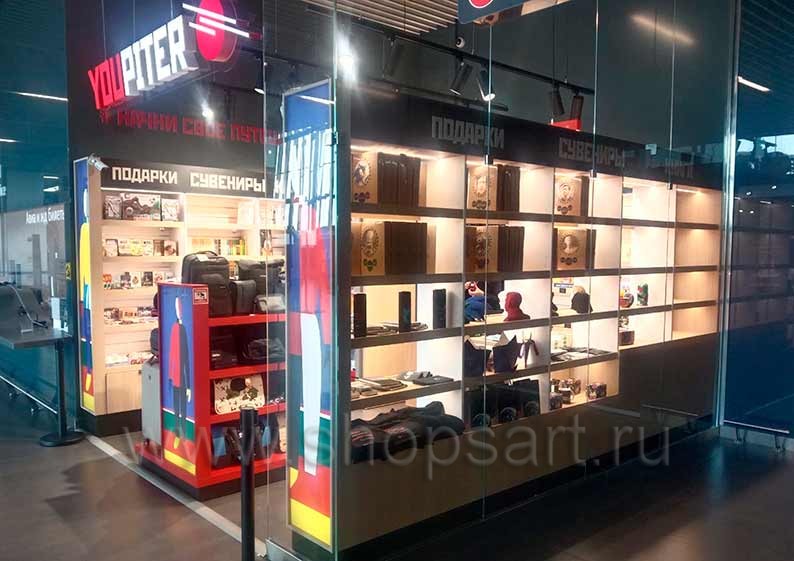 На этой странице Вы можете ознакомиться с фотографиями торгового оборудования в открытом магазине книг и сувениров 1 «YOUPITER», находящегося в городе Саратов, Международный аэропорт Гагарин, на основе коллекции торговой мебели «КНИГОЛЮБ». Произвела и поставила в магазин оборудование для книжного магазина: острова для магазина книг, шкафы для книжного магазина, столы для магазина книг, стеллажи для книжного магазина и другое торговое оборудование для книг компания «Искусство интерьеров». Узнать больше о наших коллекциях мебели для магазинов книг Вы можете на странице мебели для книжного магазина .
