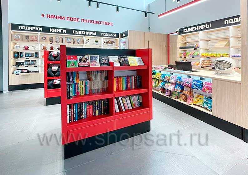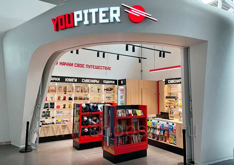 На этой странице Вы можете ознакомиться с фотографиями торгового оборудования в открытом магазине книг и сувениров 2 «YOUPITER», находящегося в городе Саратов, Международный аэропорт Гагарин, на основе коллекции торговой мебели «КНИГОЛЮБ». Произвела и поставила в магазин оборудование для книжного магазина: острова для магазина книг, шкафы для книжного магазина, столы для магазина книг, стеллажи для книжного магазина и другое торговое оборудование для книг компания «Искусство интерьеров». Узнать больше о наших коллекциях мебели для магазинов книг Вы можете на странице мебели для книжного магазина .