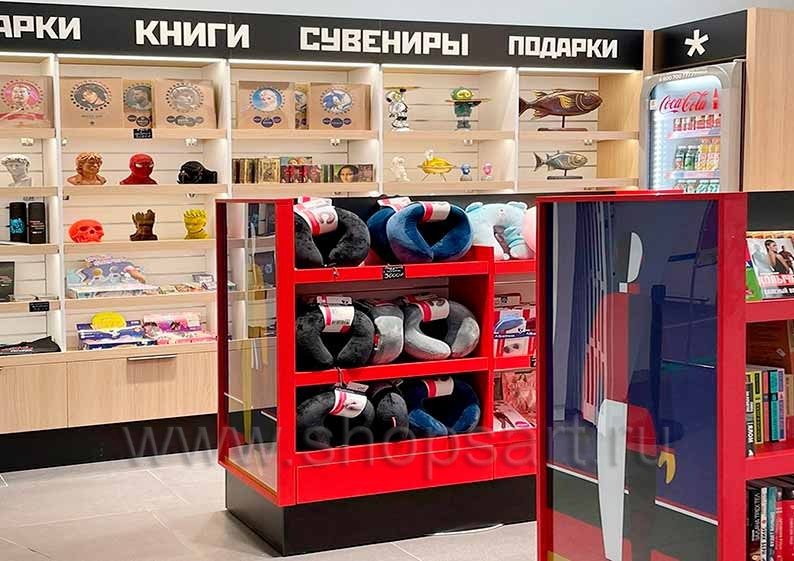 Посмотрите на фотографии, размещенные на данной странице. На них вы увидите коммерческий объект, оснащенный функциональной коллекцией торговой мебели «Книголюб». Она создана специально для размещения печатной продукции. Эта прочная и вместительная мебель станет отличным помощником в развитии бизнеса. Фотографии торгового оборудования магазина книг и сувениров 2 YOUPITER, аэропорт Саратов, коллекция КНИГОЛЮБ показывают удобство и эстетику, которые может внести правильно подобранное оснащение в атмосферу заведения.