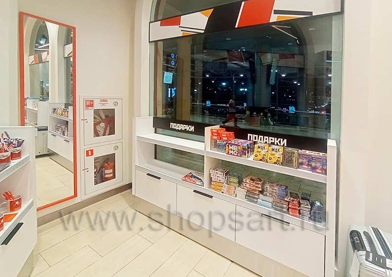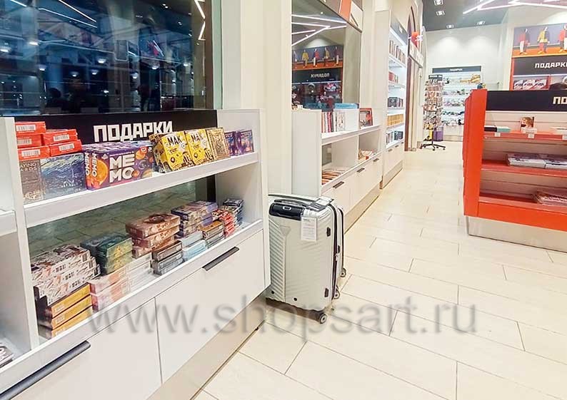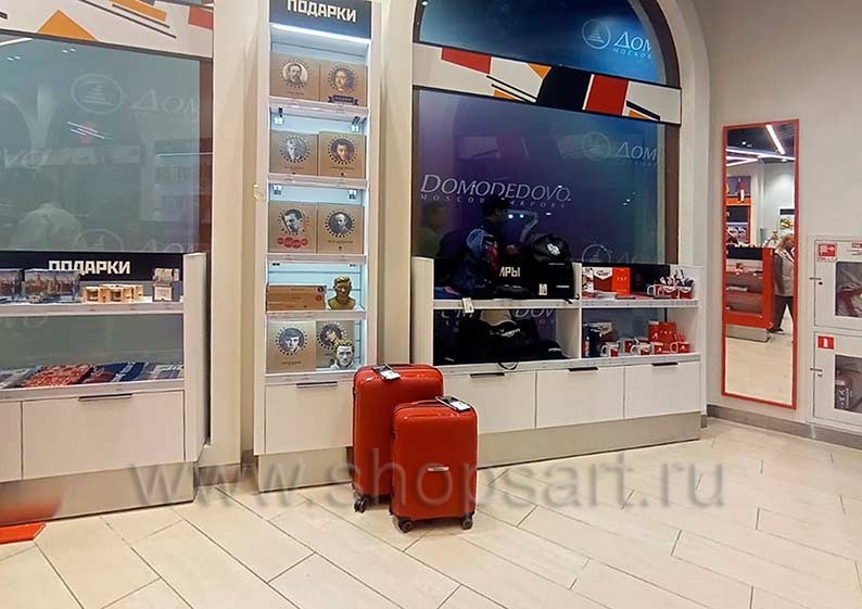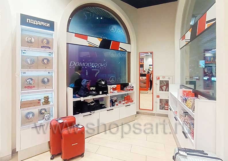 На этой странице Вы можете ознакомиться с фотографиями торгового оборудования в открытом магазине книг и сувениров «YOUPITER», находящегося в Московском аэропорту Домодедово имени М.В. Ломоносова, на основе коллекции торговой мебели «КНИГОЛЮБ». Произвела и поставила в магазин оборудование для книжного магазина: острова для магазина книг, шкафы для книжного магазина, столы для магазина книг, стеллажи для книжного магазина и другое торговое оборудование для книг компания «Искусство интерьеров». Узнать больше о наших коллекциях мебели для магазинов книг Вы можете на странице мебели для книжного магазина .