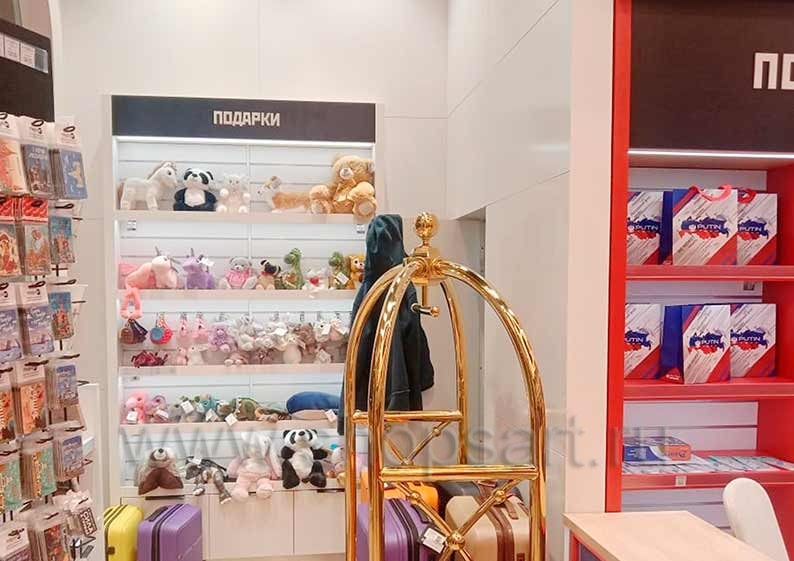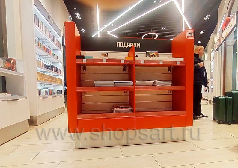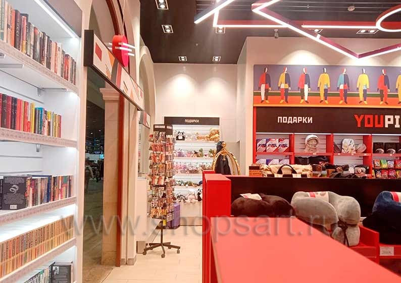 Если вы цените в оснащении коммерческих заведений функциональность и удобство применения, то наша новинка – в помощь вашему бизнесу! Коллекция «Книголюб» отличается прочностью и вместительностью. С ней вы сможете разместить и грамотно презентовать широкий ассортимент печатной продукции. Фотографии торгового оборудования магазина книг и сувениров YOUPITER, аэропорт Домодедово, коллекция КНИГОЛЮБ демонстрируют эстетику и лаконичный стиль данной линейки конструкций.