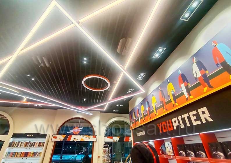 Если мебель для книжного магазина оснащена подсветкой, это улучшает демонстрацию печатной продукции. Рассеянный свет в торговом зале не дает такого эффекта, как точечно направленные светильники, встроенные в оборудование. Последние дают покупателям возможность хорошо рассмотреть имя автора книги и ее название.