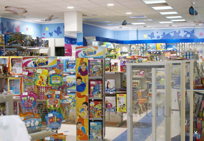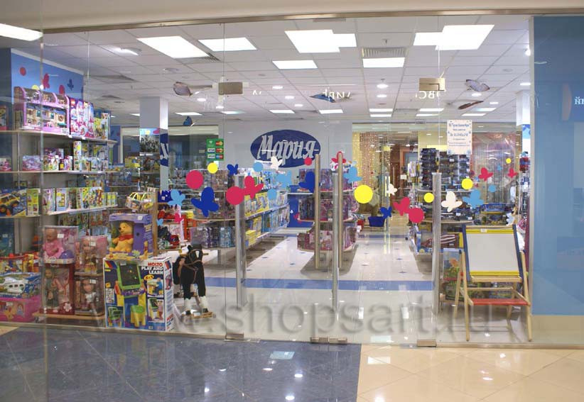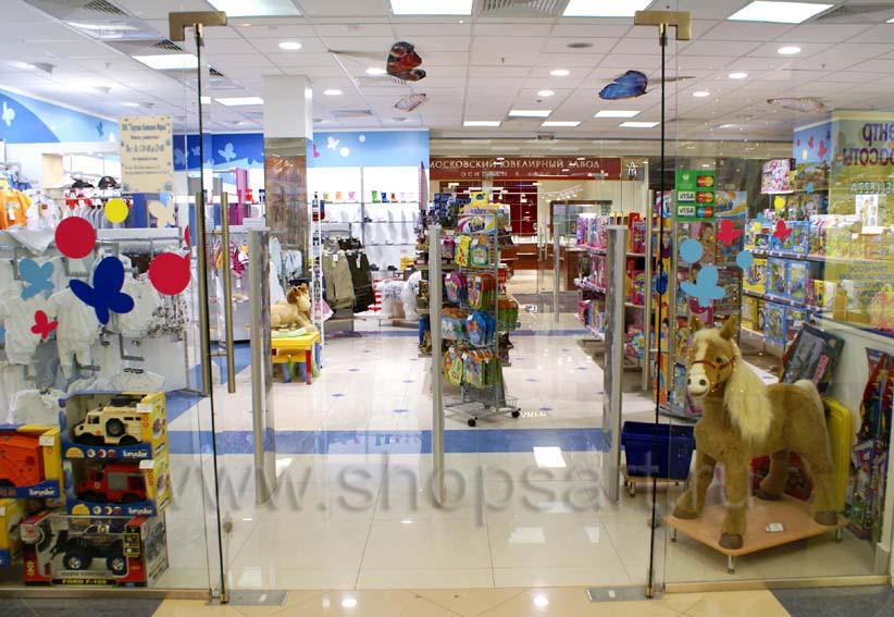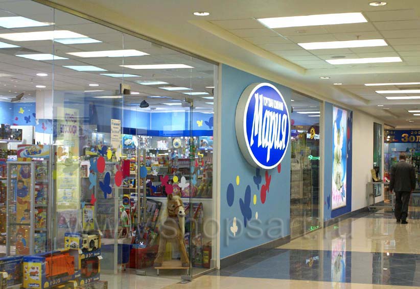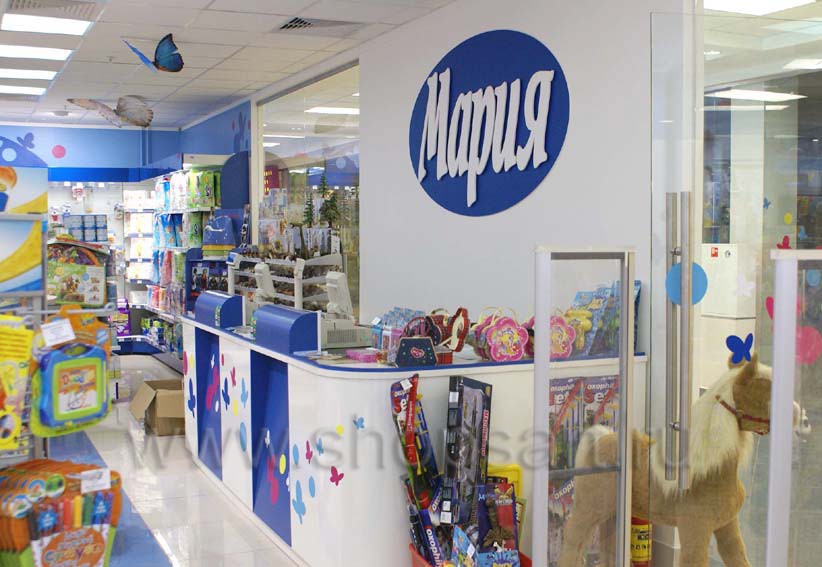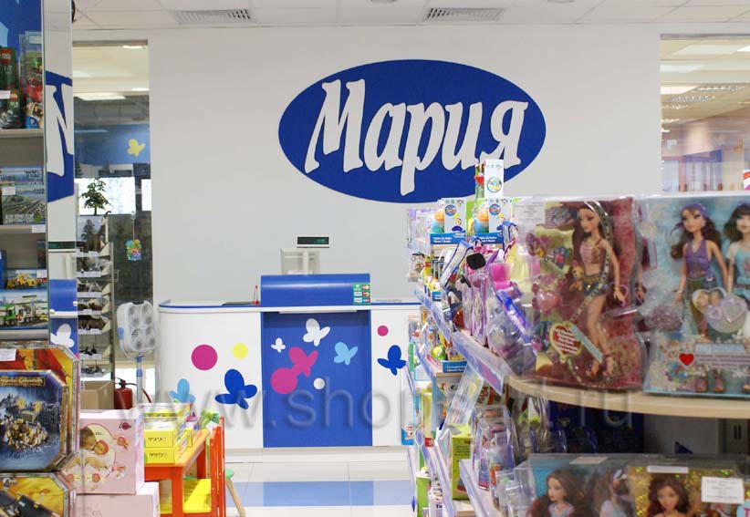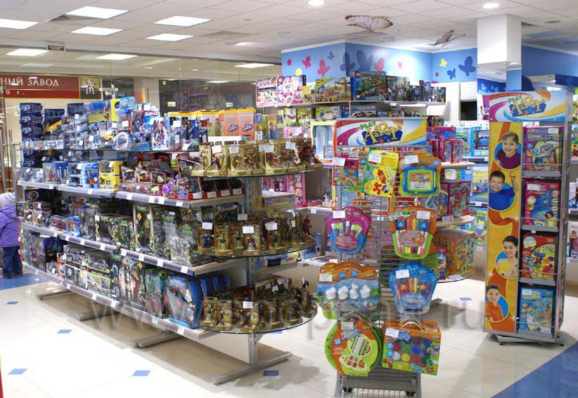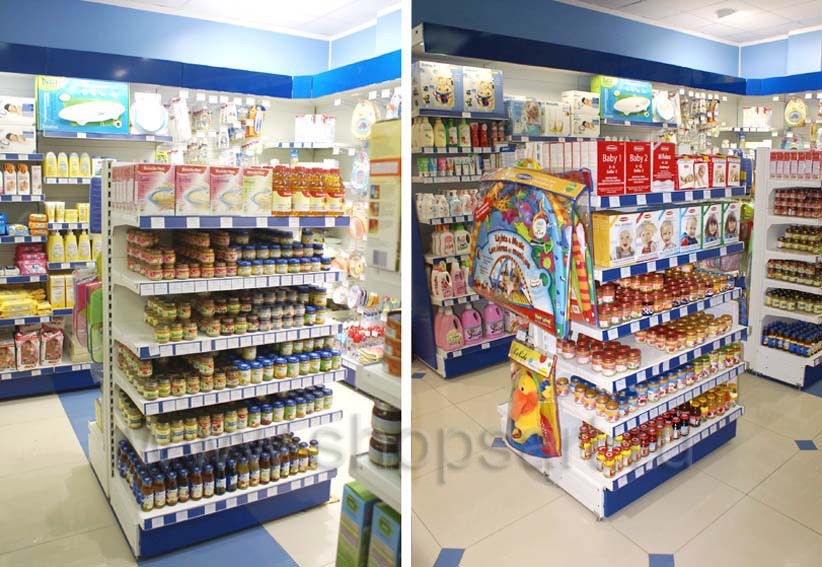Магазин «Мария» – пример рациональной организации торгового пространства, где представлены различные группы детских товаров. На основе коллекции «Торговые стеллажи» наша компания создала комплект оборудования, в который вошли стеллажи с полками нескольких видов, предназначенные для игрушек, детского питания, одежды. Для зонирования помещения использовались круговые стеллажи для книг, перфорированные стеллажи для размещения коробок с настольными играми, компактные вешала для одежды.