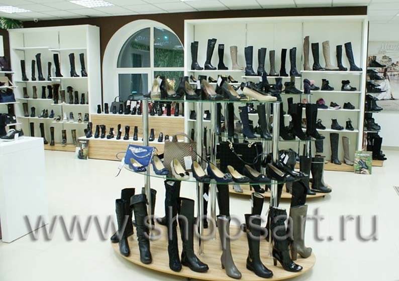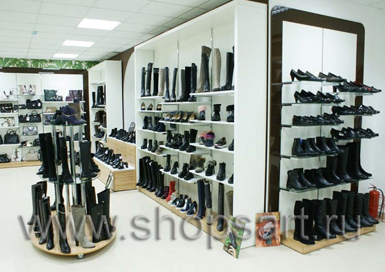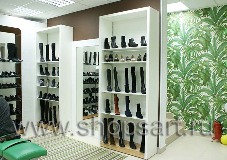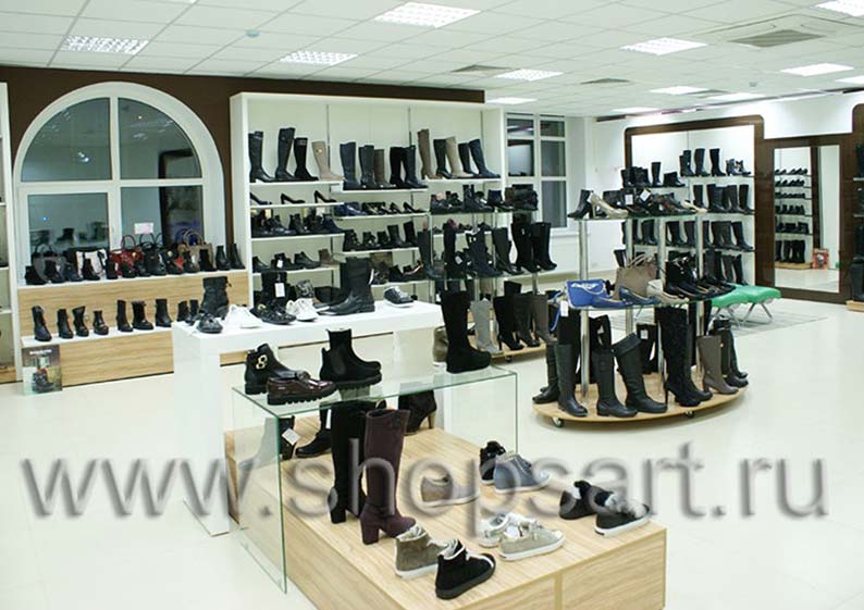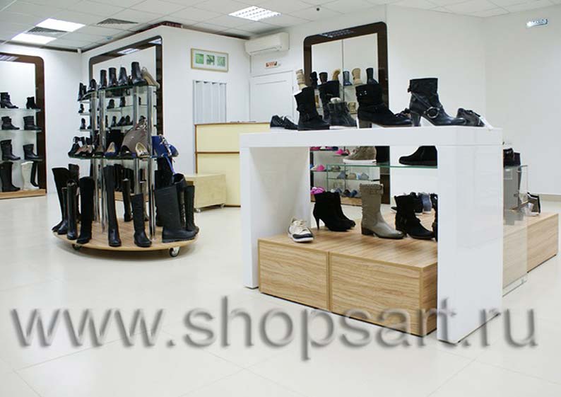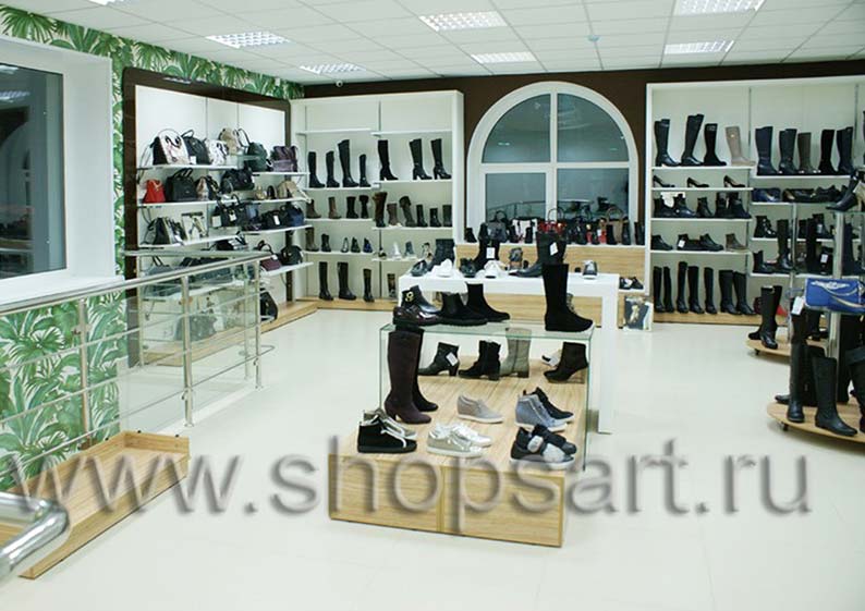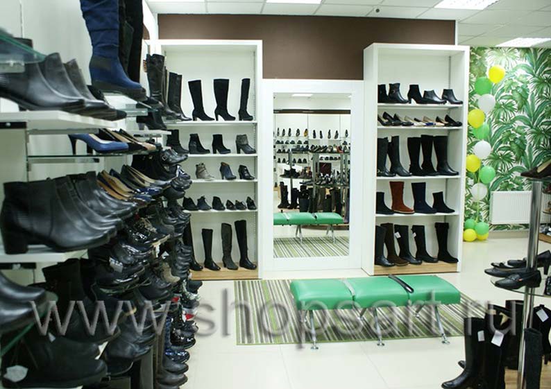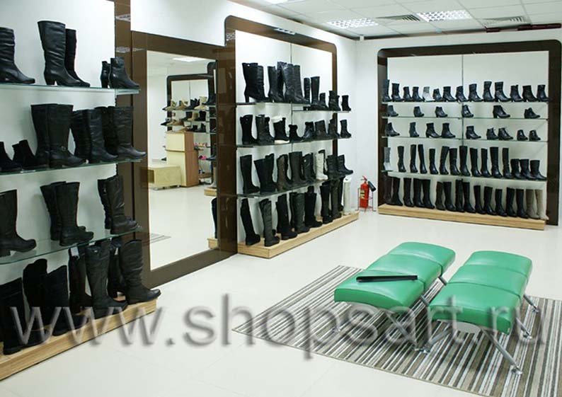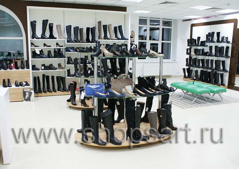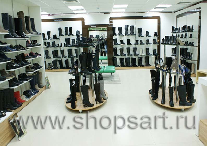 Если говорить, про критерии оборудования для обуви, то оно должно выдерживать вес всей продукции, располагаться с учетом среднего роста покупателя и на уровне его роста. Одной из целей, при создании интерьера для магазина обуви и одежды, мы ставим обеспечение комфорта и удобство покупателя.
