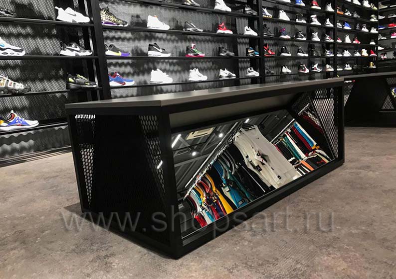 На этой странице Вы можете ознакомиться с фотографиями торгового оборудования в открытом магазине спортивной обуви, спортивной одежды и аксессуаров «Funky Dunky», находящемся в БК «Арма», город Москва, Нижний Сусальный переулок, дом 5, строение 1, метро Курская, на основе коллекции торговой мебели «СТИЛЬ ЛОФТ». Поставила оборудование для магазина: витрины для обуви, стеллажи для магазина обуви, острова для магазина обуви и другое оборудование для обуви компания «Искусство интерьеров». Узнать больше о наших коллекциях мебели для магазинов обуви Вы можете на странице торгового оборудования для магазинов обуви.