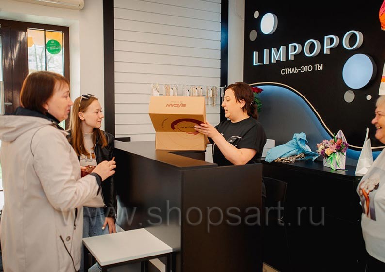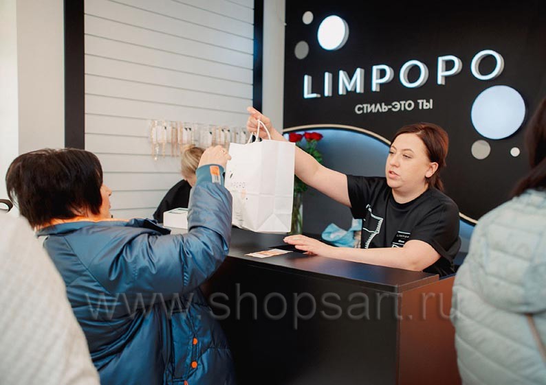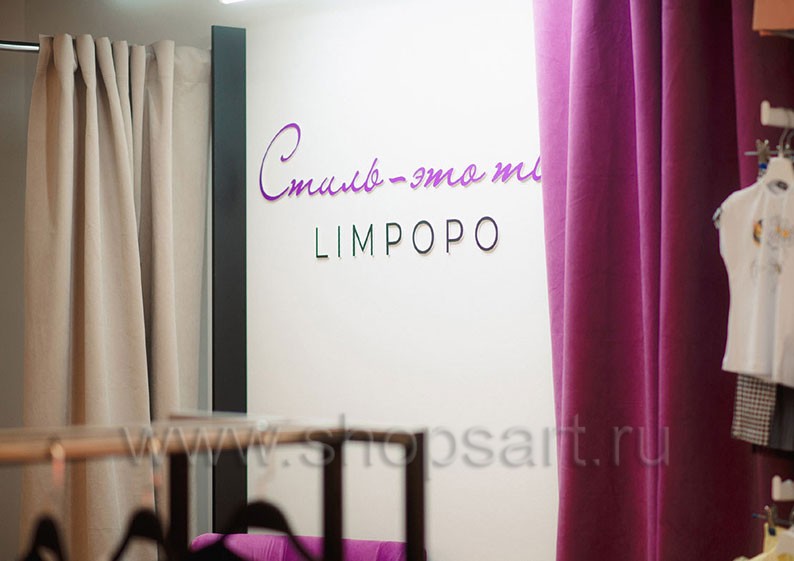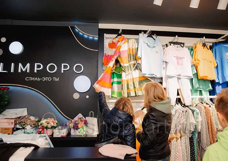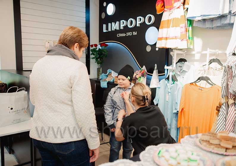 На этой странице Вы можете ознакомиться с фотографиями торгового оборудования в открытом магазине женской и детской одежды «LIMPOPO», находящегося в городе Ефремов, улица Ленина, дом 22, Тульской области, на основе коллекции торговой мебели «ЧЁРНО-БЕЛАЯ КЛАССИКА». Произвела и поставила в магазин оборудование для одежды: вешала для магазина одежды, стеллажи для магазина одежды, стойки для магазина одежды, острова для магазина одежды компания «Искусство интерьеров». Узнать больше о наших коллекциях оборудования для магазинов одежды Вы можете на странице мебели для магазинов одежды.