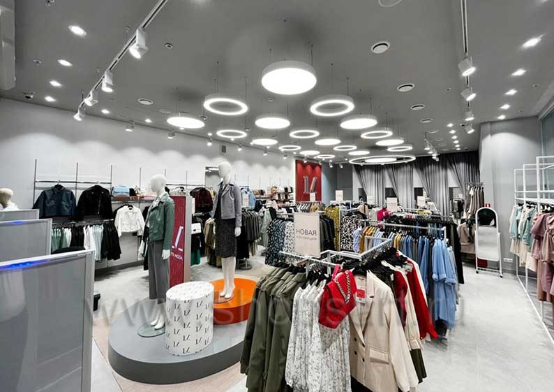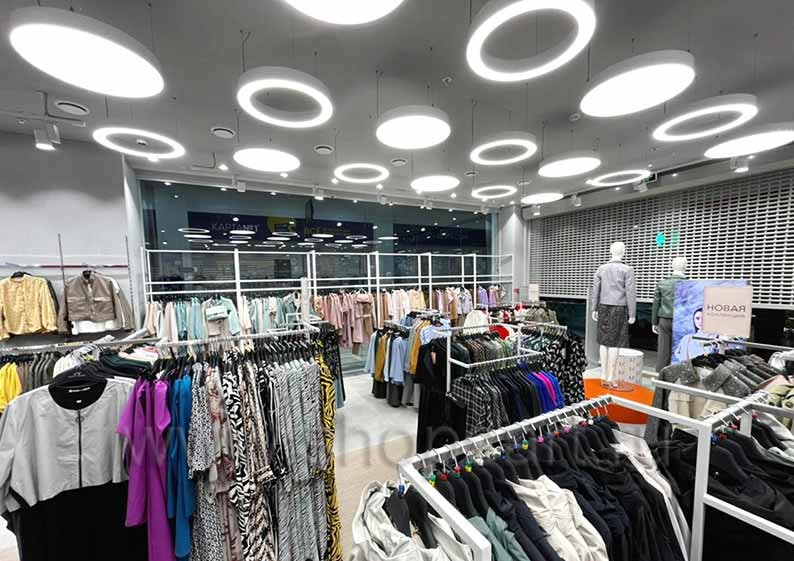 - Полки с подсветкой. Такое оборудование подчеркнет преимущества одежды и будет очень красиво смотреться в интерьере коммерческого помещения.