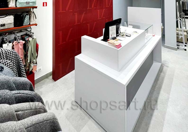 - Мебель для кассовой зоны. Ее применение позволяет выделить зону расчетных операций, т.е. участок, на которой расположена касса.