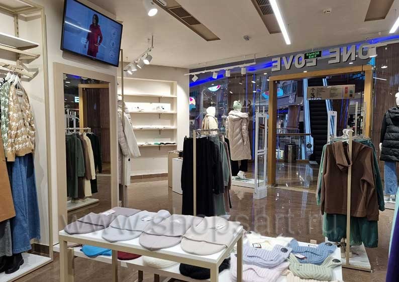 Дизайн интерьера магазина одежды “ONE LOVE”, ТРЦ «РИО», г. Москва на основе коллекции торгового оборудования «КЛАССИЧЕСКИЙ ЛОФТ»