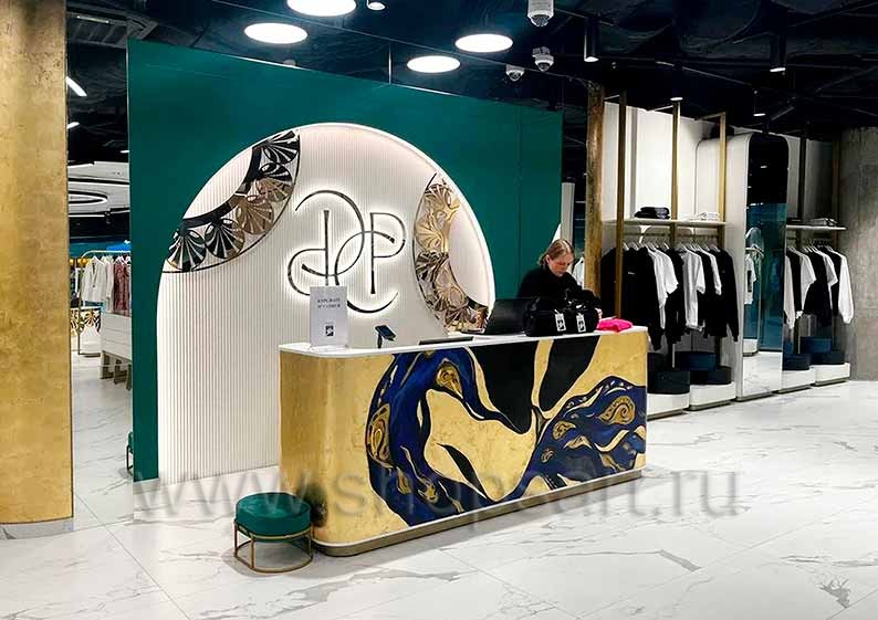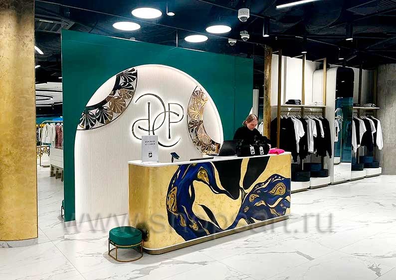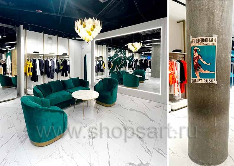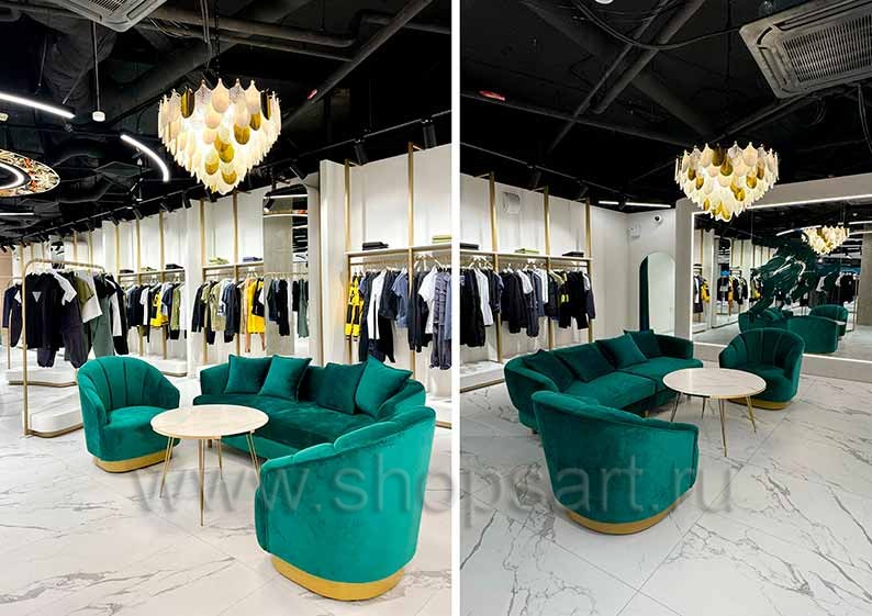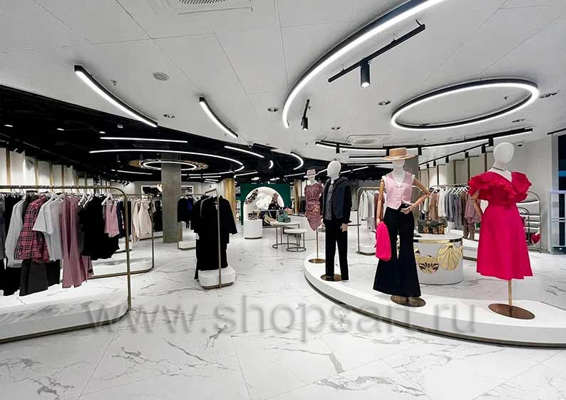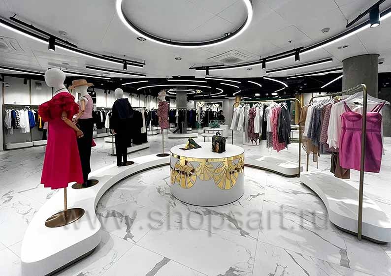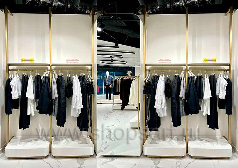 Дизайн интерьера магазинов одежды на основе коллекции торгового оборудования ЗОЛОТАЯ ЛИНИЯ