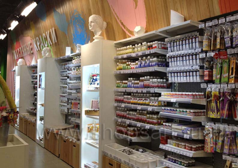 На этой странице Вы можете ознакомиться с фотографиями торгового оборудования в открытом магазине для художников “Передвижник”, находящегося в городе Москве, Центральный детский магазин, Театральный проезд, 5/1, 3-й этаж, на основе коллекции торгового оборудования «ЦВЕТНЫЕ МЕТАЛЛИЧЕСКИЕ СТЕЛЛАЖИ». Разработала и поставила торговую мебель: торговые стеллажи, торговые металлические стеллажи, усиленные стеллажи и другую торговую мебель компания «Искусство интерьеров». Узнать больше о наших коллекциях мебели для магазинов Вы можете на странице торгового оборудования для магазинов и бизнеса.