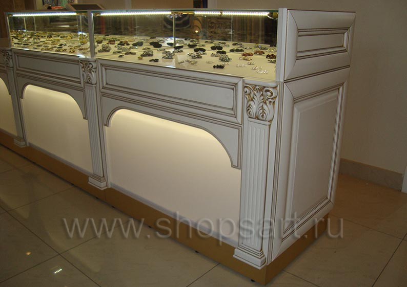 Наша компания занимается производством торгового оборудования. Мы изготовили функциональное оснащение для многих объектов, реализующих товары различных видов. Компания совершенствует свою продукцию, и каждая новая коллекция – яркое тому подтверждение. Представляем вашему вниманию мебель серии «ЭЛИТ ГОЛД». Это классика в лучших традициях. Торговые конструкции отличают строгие и в то же время гармоничные формы, лаконичный стиль. В сочетании с пастельными тонами и декоративными элементами, такими как арочные детали, карнизы и пилястры, строгость линий приобретает особый шик и презентабельность. Привлекательности и изысканности коллекции добавляют фасады, на которых выполнено патинирование золотом. Основным материалом производства служит высококачественный ЛДСП. В качестве сырья для изготовления лицевых деталей, стилизованных под дерево, используется МДФ, а также шпон натурального дерева.