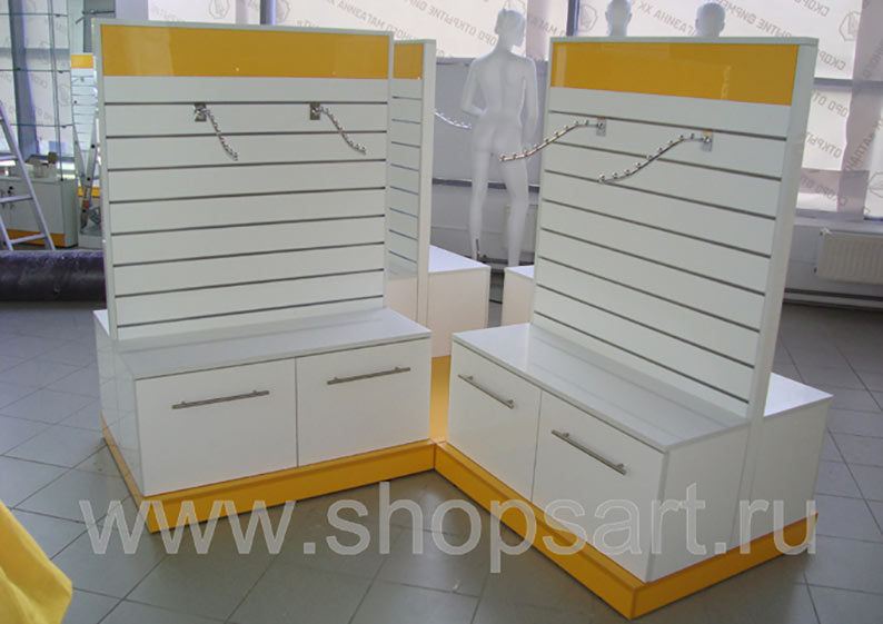 В нашей компании производится качественная и стильная торговая мебель. Предпринимателям рекомендуем ознакомиться с ассортиментом продукции, представленной на фото магазинов одежды и других страницах сайта. У нас можно заказать функциональное оснащение, необходимое для полного укомплектования торгового зала. В частности, компания изготавливает следующие виды конструкций: