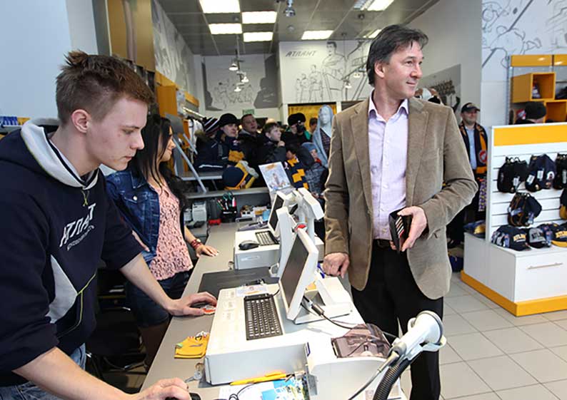 На этой странице Вы можете ознакомиться с фотографиями торгового оборудования в открытом официальном магазине хоккейного клуба «Атлант», город Мытищи, улица Лётная, дом 17, Ледовый Дворец «Арена Мытищи», на основе коллекции торговой мебели «АТЛАНТ». Поставила в магазин оборудование для одежды: вешала для магазина одежды, стеллажи для магазина одежды, стойки для магазина одежды, шкафы для магазина одежды, острова для магазина одежды компания «Искусство интерьеров». Узнать больше о наших коллекциях мебели для магазинов одежды вы можете на странице оборудование для одежды в Москве .