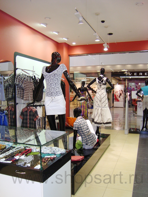- Манекены. Как правило, их устанавливают неподалеку от входной зоны. Чаще всего с помощью манекенов демонстрируют новинки сезона или лучшие модели из ассортимента одежды. Несмотря на свое непрерывное молчание, эти конструкции эффектнее любых слов рекламируют товар. Специалисты рекомендуют использовать в магазинах одежды как можно больше манекенов. Чаще всего именно надетая на манекены одежда привлекает внимание покупательниц. Можно использовать для демонстрации изделий как классические варианты этого оборудования, так и демоформы.