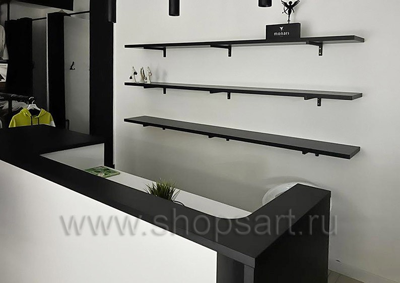 Нередко для размещения и презентации женской одежды применяют пристенные стеллажи. Количество полок в них может быть разным (по усмотрению заказчика). Для хранения товарных запасов данные торговые конструкции оснащаются накопителями.