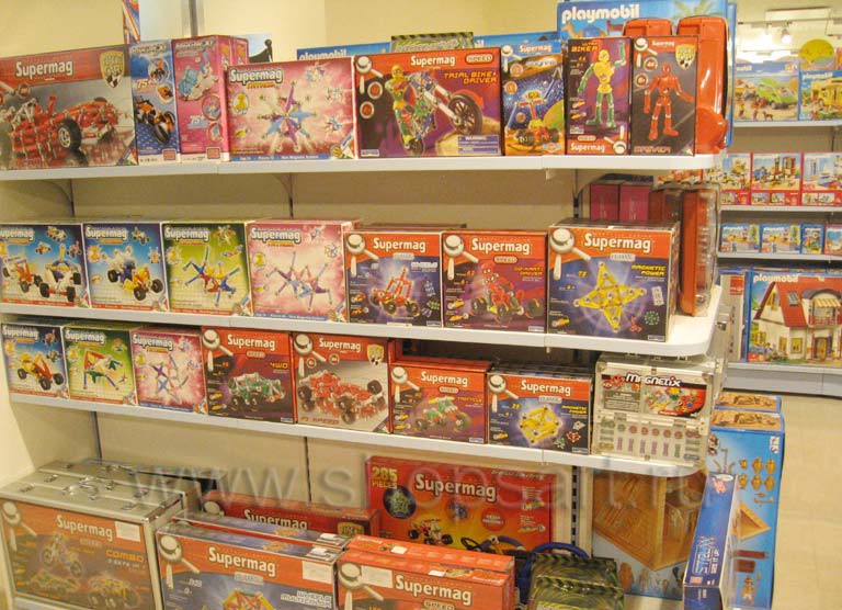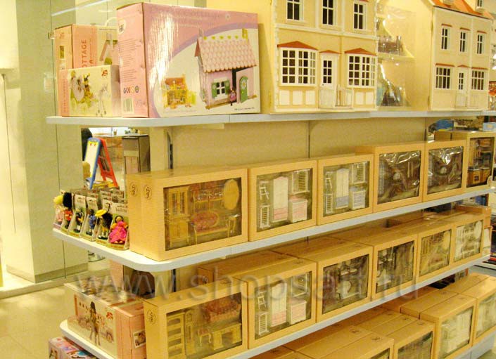 Вся мебель коллекции отличается отменными эксплуатационными характеристиками, ее можно легко переставить при необходимости либо демонтировать. Легкие и надежные конструкции позволяют выкладывать множество товаров, которые находятся в зоне доступа покупателей. Это важное маркетинговое решение, если учитывать, что основной контингент посетителей – дети. Им важно взять игрушку в руки и убедиться, что это именно то, о чем они мечтали.
