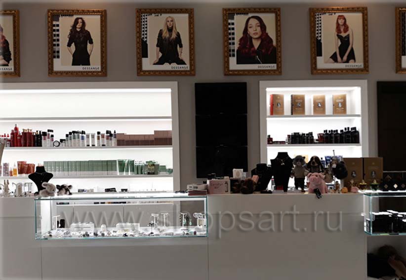 Удобство и функциональность, красивый дизайн и прочность. Все эти качества присущи конструкциям, которые производит наша компания. Обратите внимание на фотографии торгового оборудования отдела косметики салона красоты DESSANGE, Лесная улица, коллекция ПУДРА. Использованная для оснащения данного объекта мебель состоит из самостоятельных модулей. Для производства коллекции применяются качественные материалы.